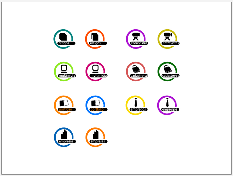 Icones “pictogramas” da revista digital. Embasado no projeto, explicação no projeto do TCC e devidamente registrado os direitos autorais.