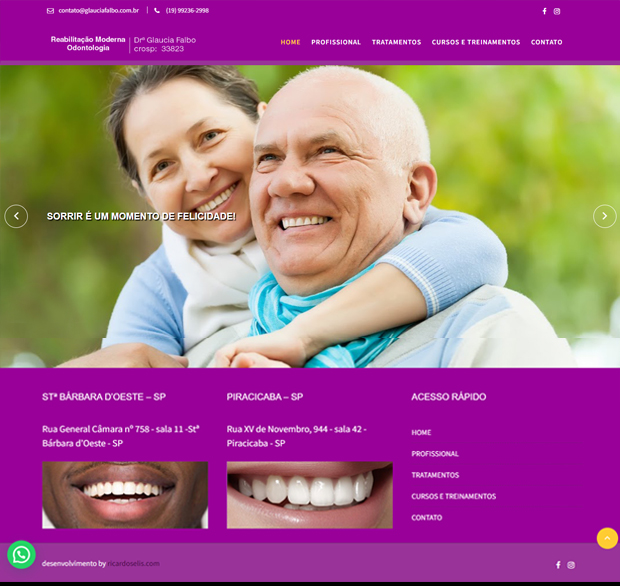 Foi realizada a criação de site em Americana para Drª Gláucia Falbo, que atende como dentista, fazendo tratamento de reabilitação moderna nas regiões de Sta Barbará d’Oeste e Piracicaba. Onde também oferece cursos odontológicos em seu site.